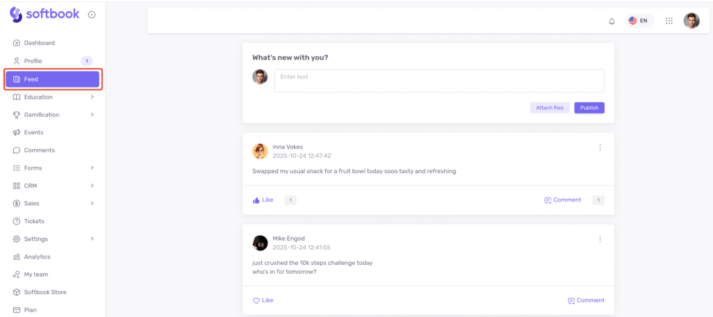 Для включения ленты перейдите в раздел “Настройки” → “Общие настройки” → “Социальная сеть” и активируйте опцию “Включить ленту новостей”.