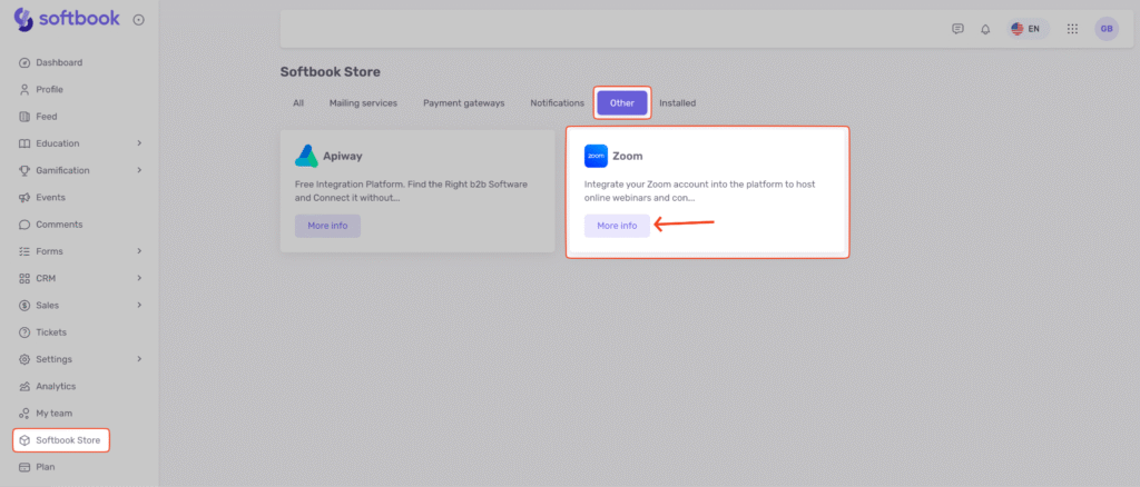 1. Перейдіть до розділу Softbook Store у боковому меню вашої платформи.